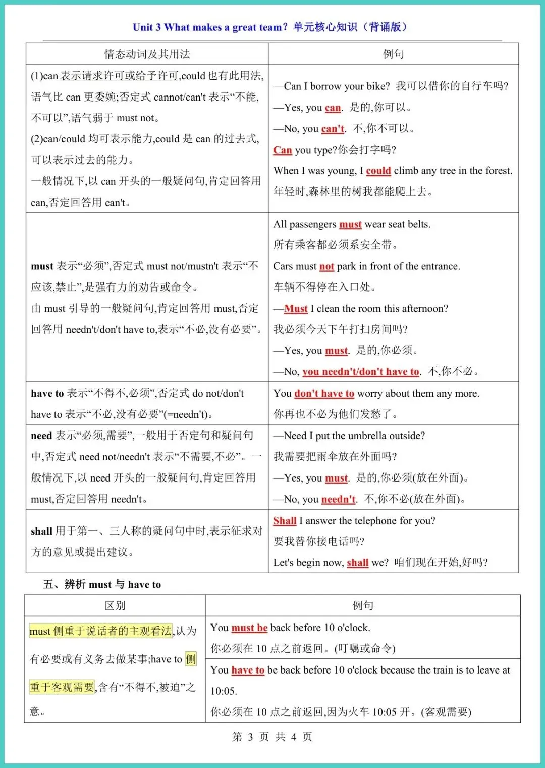 【免费下载】八年级(下)英语Unit_3_核心知识(外研版) | PDF完整高清电子版可打印