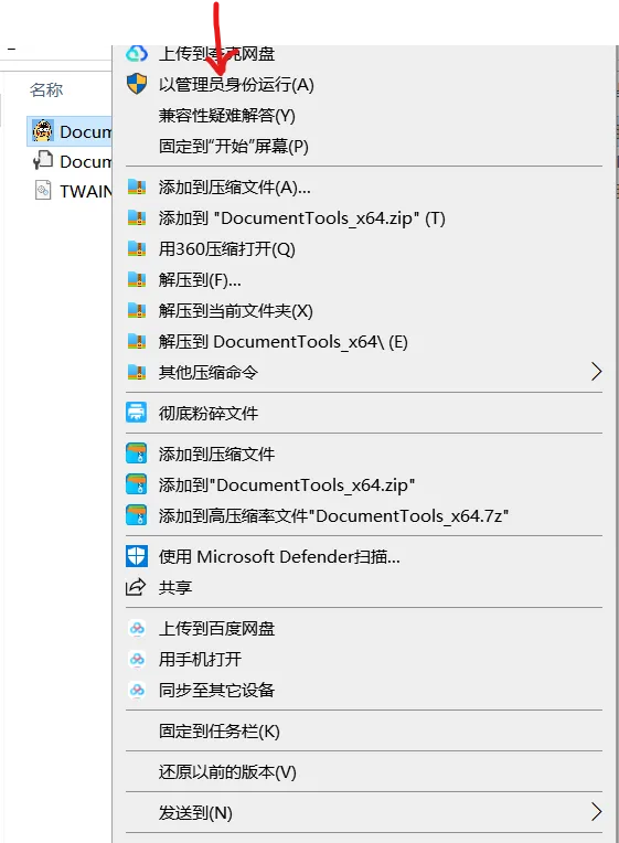打开解压完的文件夹,找到【DocumentTools_x64.exe】双击打开或者以管理员身份运行打开都可以。