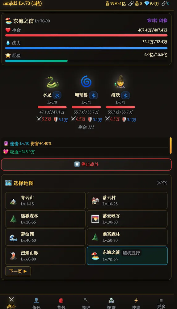 剑修一刀万法破,高攻暴击流;体修钢铁之躯,站桩不倒;法修法力滔天,AOE清场;符师辅助全能,还是坐骑装备打造大师。每升一级获得属性点和技能点自由分配,15转后觉醒三条专属路线,彻底分化你的战斗风格。