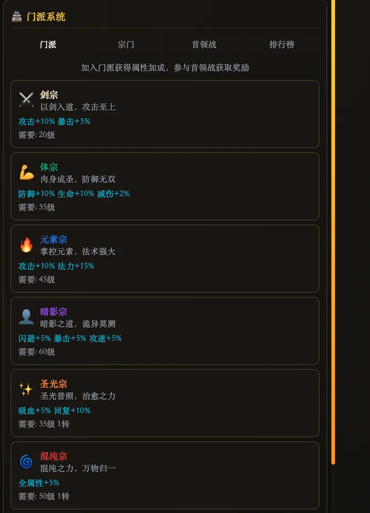 * 四大门派,各有所长