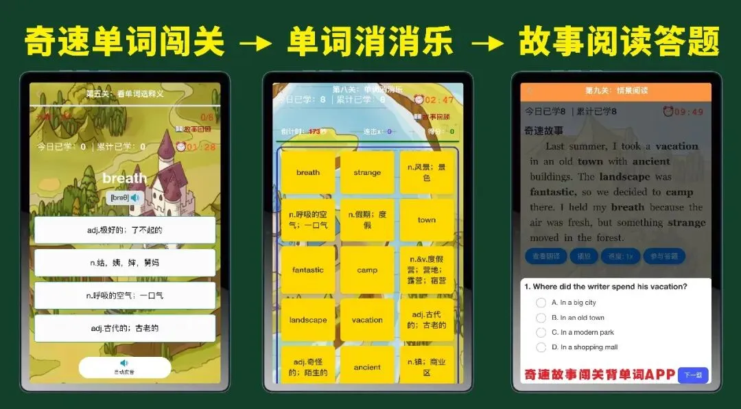 独创思维导图故事闯关记词法,小初高全学段覆盖,高效攻克背单词难题,学员粘性强、复购率超高。