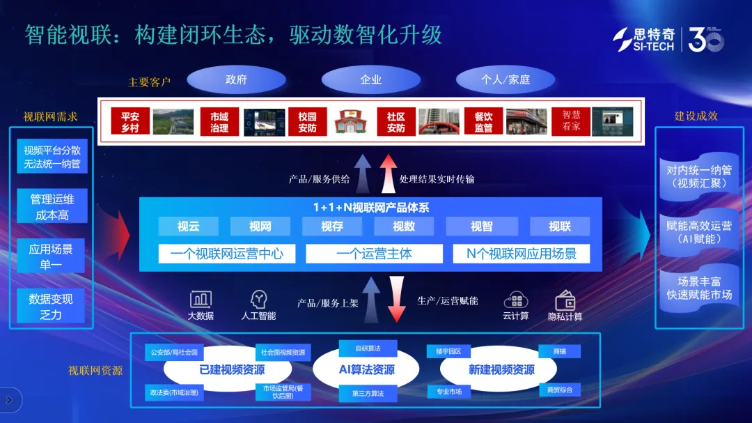 面向广电视联网运营中平台分散、运维成本高、场景单一、数据价值难以释放等痛点,思特奇以AI生态为技术支撑,打造“1+1+N”智能视联解决方案,精准破解行业难题,助力视联网业务提质增效、价值跃升。