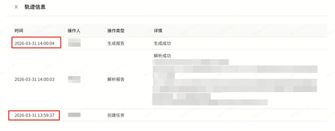从人工点击上传原始资料、创建Intake任务,到状态变为”生成报告成功”,总共耗时40秒以内。
