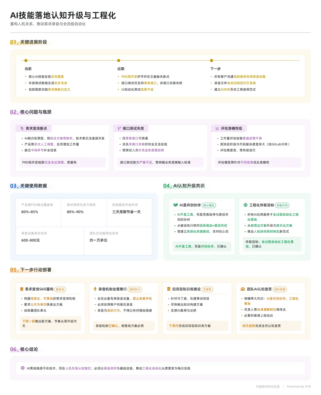 但如果一个团队能把录音保住事实,把纪要整理成结构化信息,再把方法沉淀成 Skill,让经验跨人传播、跨项目复制,那它拥有的就不只是某个人的效率提升,而是一套真正开始运转的生产力系统。