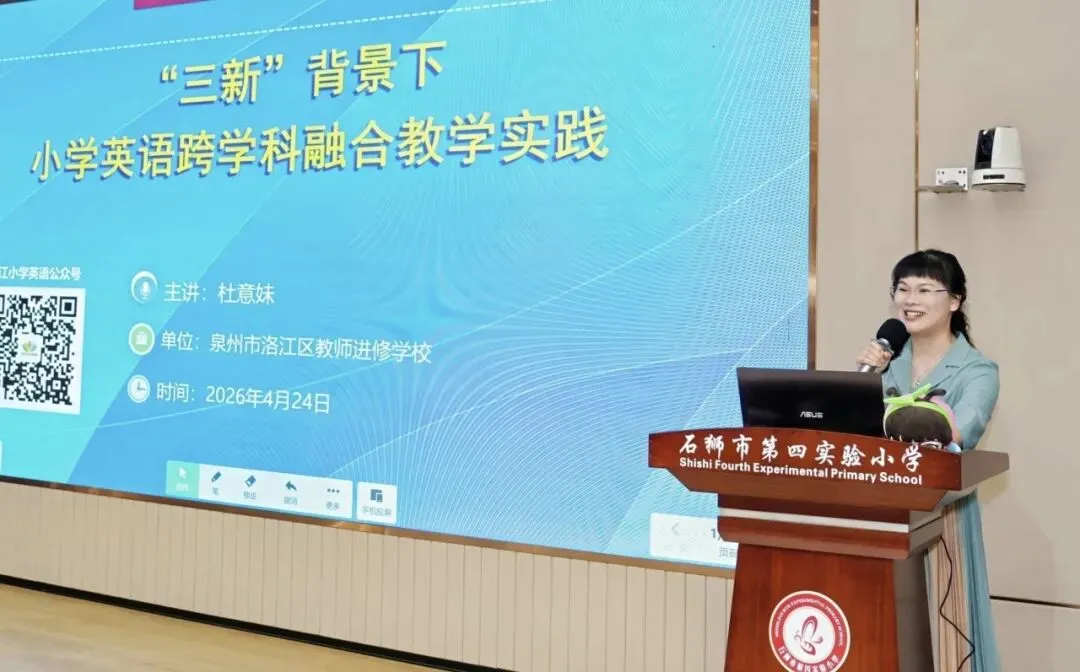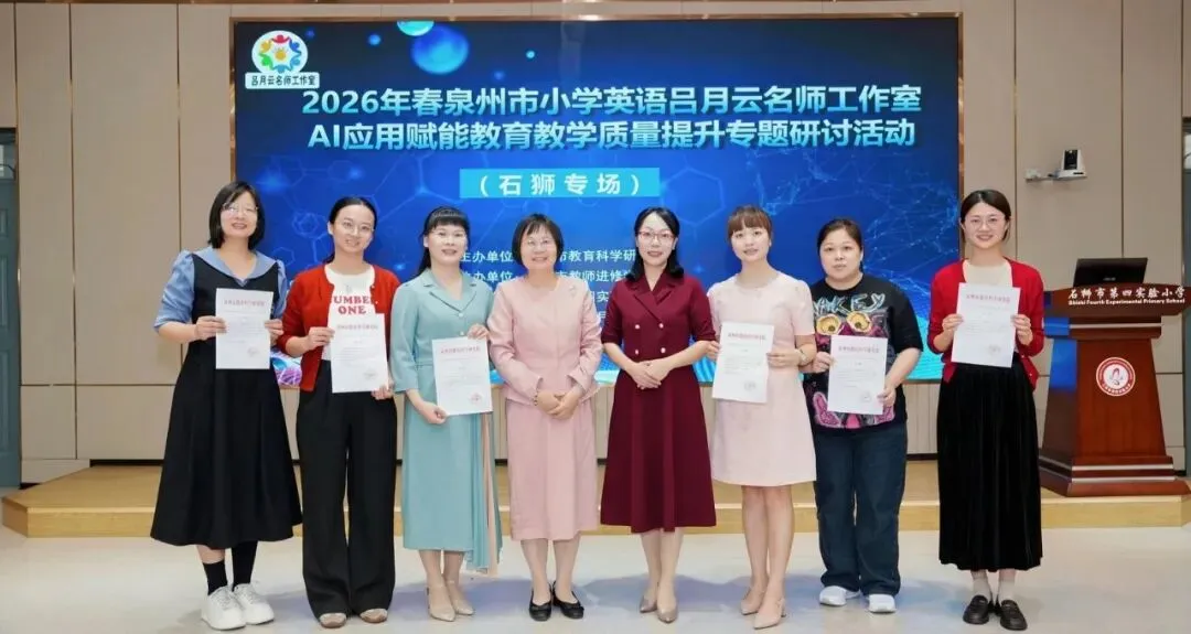 为深入贯彻《义务教育英语课程标准(2022 年版2025 年修订)》精神,扎实推进小学英语新教材研训与人工智能技术深度融合,助力教育教学提质增效,2026 年 4 月 24 日,2026 年春泉州市小学英语吕月云名师工作室 AI 应用赋能教育教学质量提升专题研讨活动(石狮专场)在石狮市第四实验小学顺利举办。