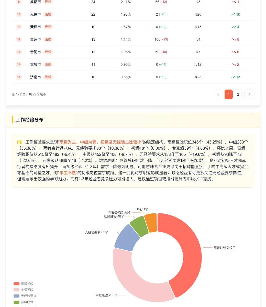 地域建议:优先考虑 上海、深圳、杭州、武汉。北京总量仍大但短期风险高,若投递北京岗位,尽量选择字节、腾讯、百度等连续招聘的稳定企业。