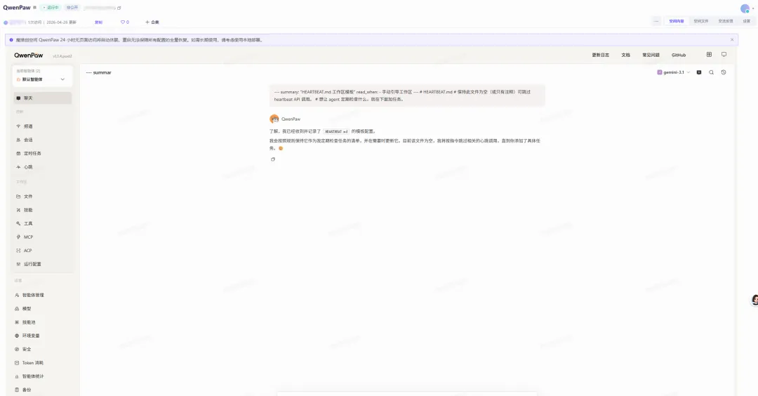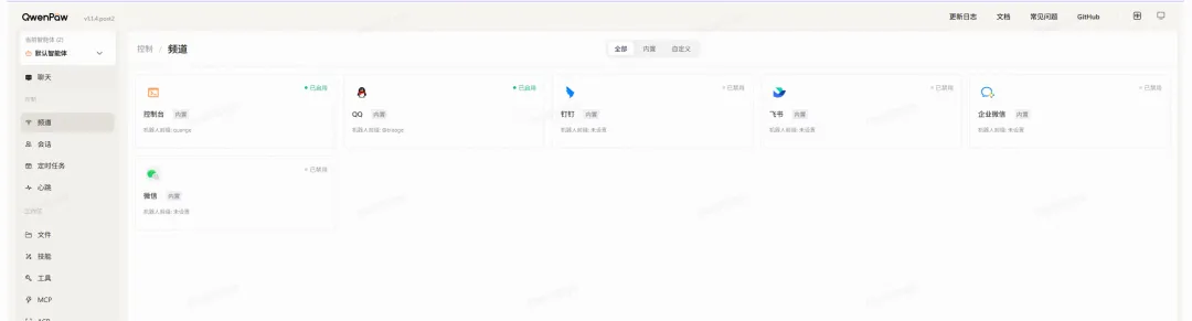 这个Agent助理名字叫:Qwenpaw,属于阿里云旗下的,专注轻量且多个隔离Agent运行智能工作区。