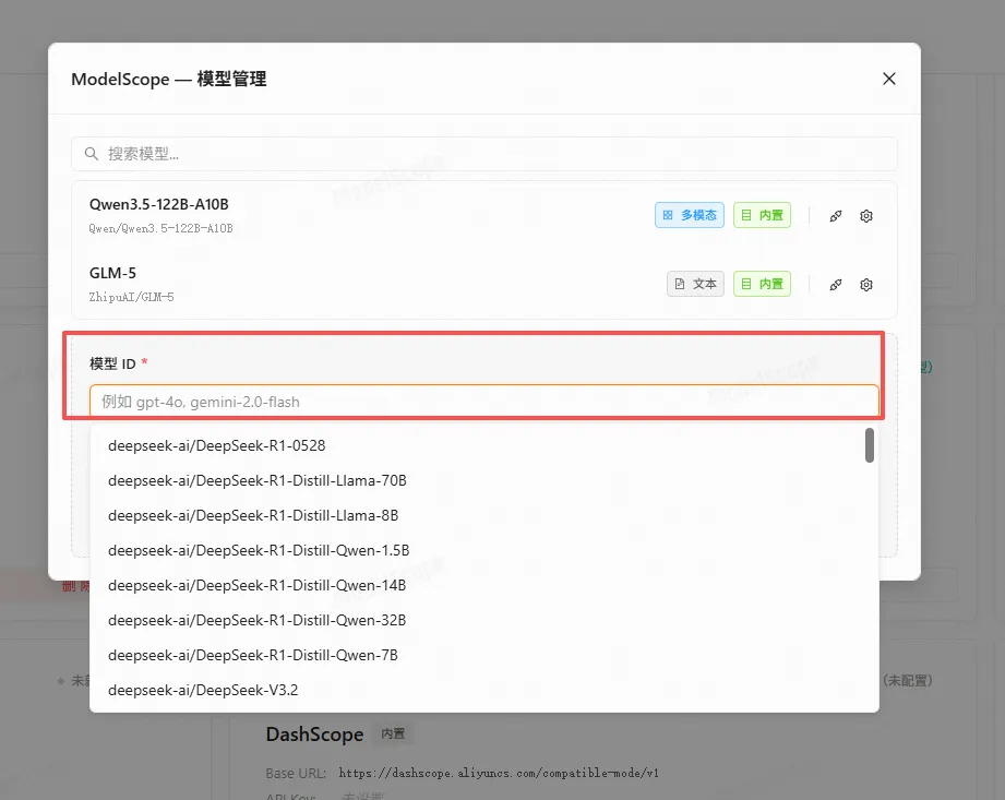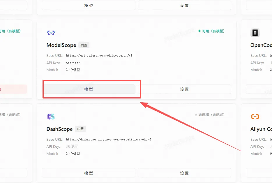 点添加模型,会自动把可以用的模型展示出来,选择你想用的模型就可以了。