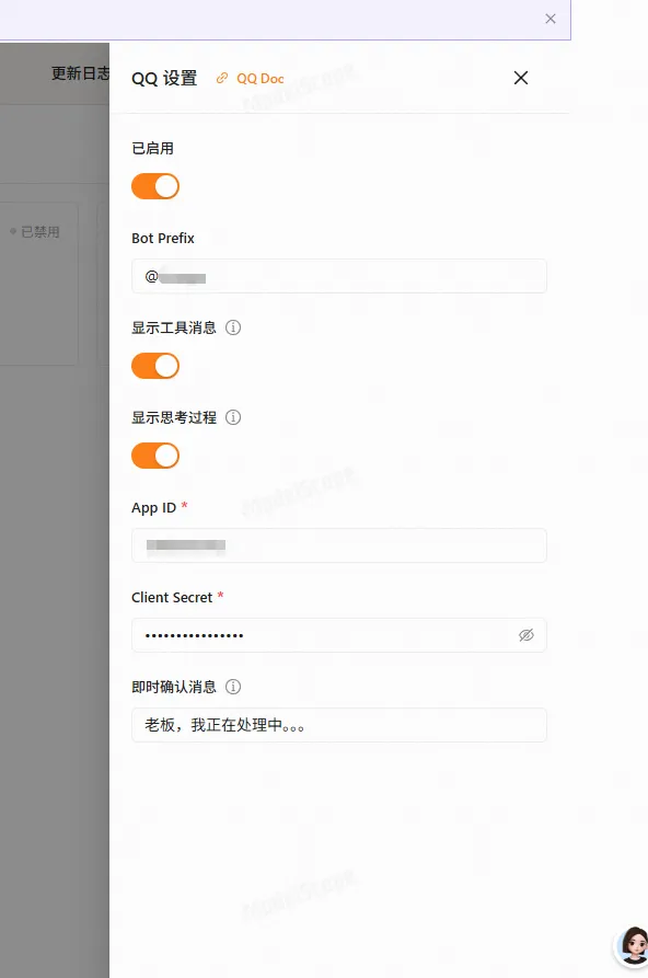 最关键的一步来了,绑定频道,我试了下,QQ机器人最简单,其他 的感觉有些复杂了。