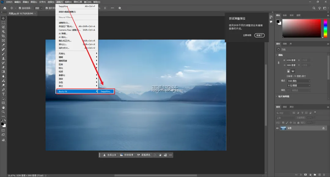 6.打开PS软件:点击【滤镜】>【Boris FX】>【Sapphire】