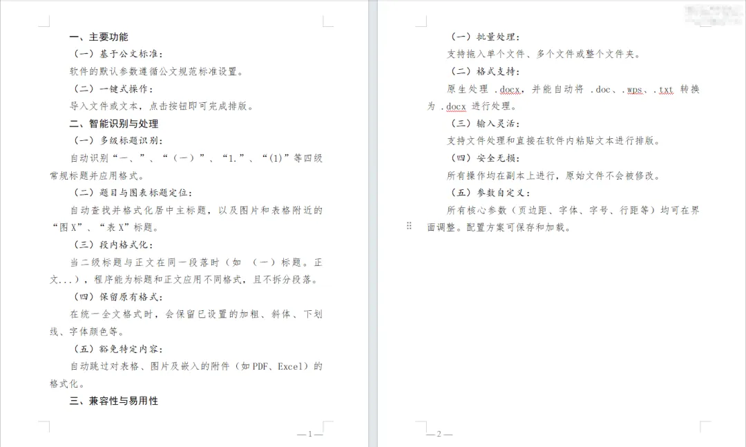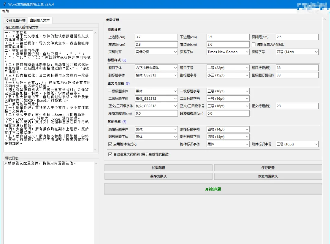 无论是学生写论文,还是体制内写报告,最枯燥但是又不得不做的一件事,那就是给word文件调整格式;页面设置、标题样式、字体、字号、行间距、缩进等等都有固定的要求。一个一个的对着要求改格式太烦了;所以我一直在找,有没有这么一个工具,可以提前把格式要求设置好,然后一键把word文档改为我们需要的格式;还真让我找到了;这个Word文档智能排版工具 (Word-Formatter-Pro),是一款免费的桌面应用,支持Windows,可将格式混乱的 Word 文档一键转换为符合规范的专业文档,实现排版工作自动化。他的功能主要有: