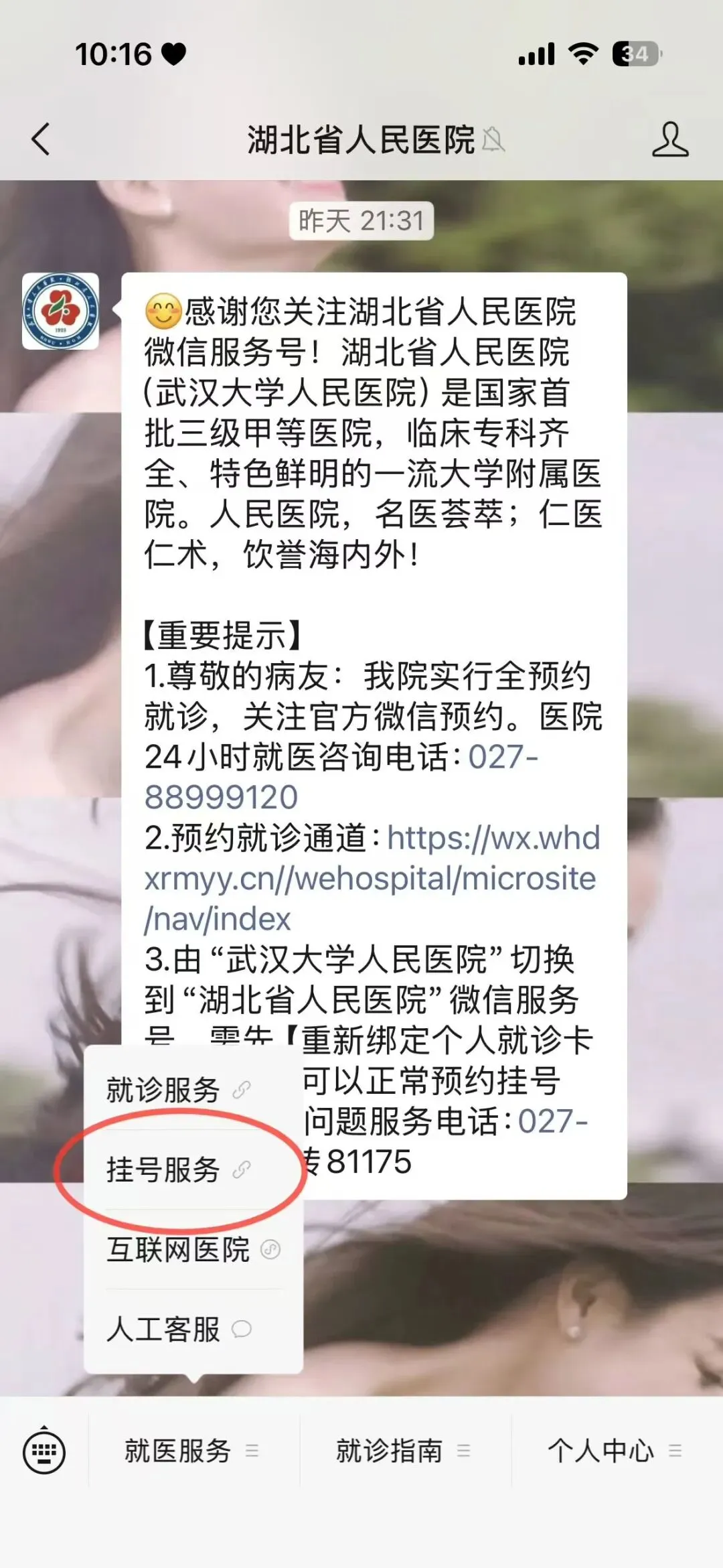 选择“挂号服务”