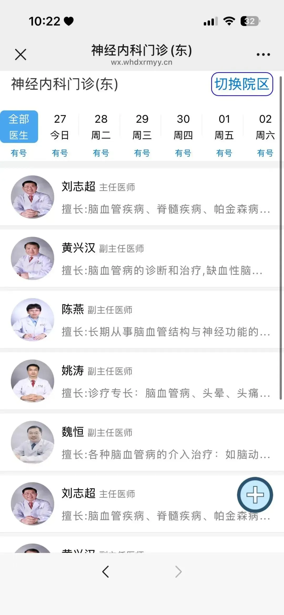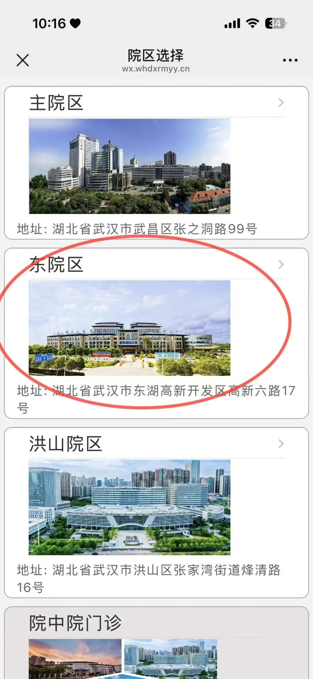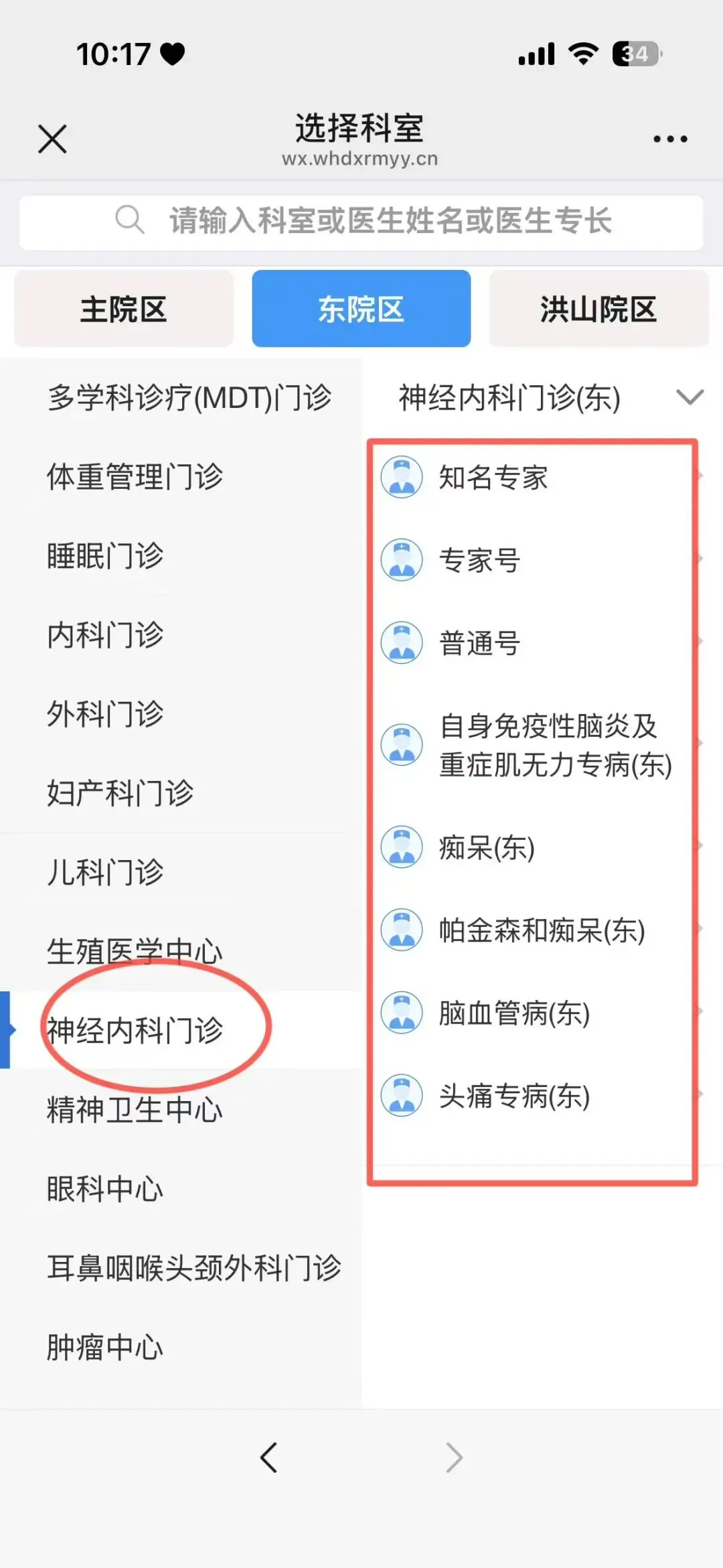 然后选择“东院区”(光谷院区)神经内科