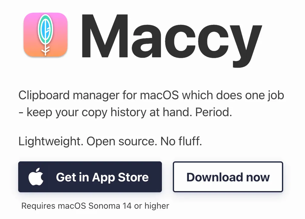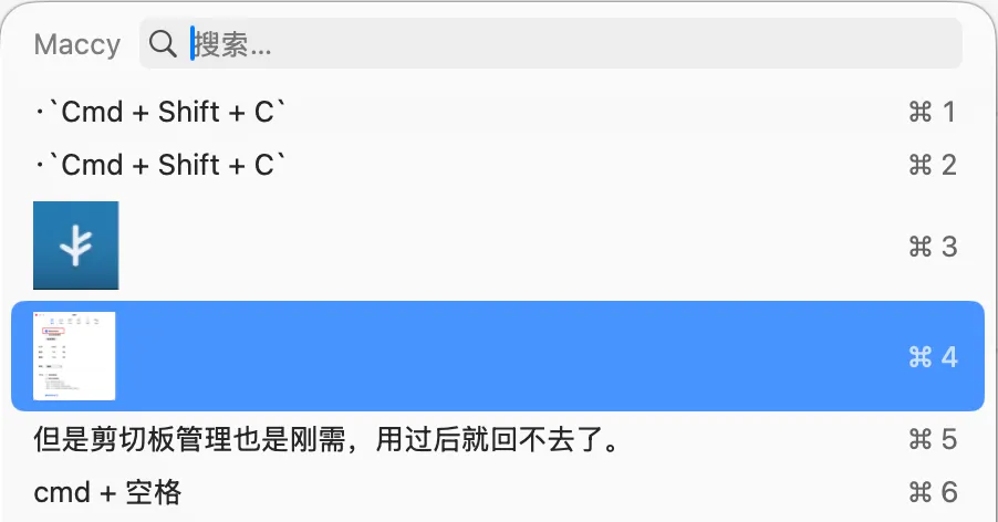 最近剪切板管理软件换成 Maccy 了,用了几天,效果还可以,推荐给你!