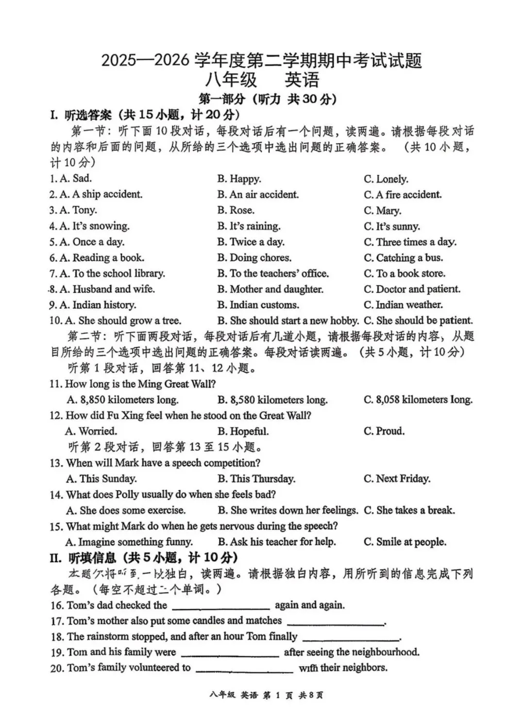 新人教版八下英语期中试卷(可下载)