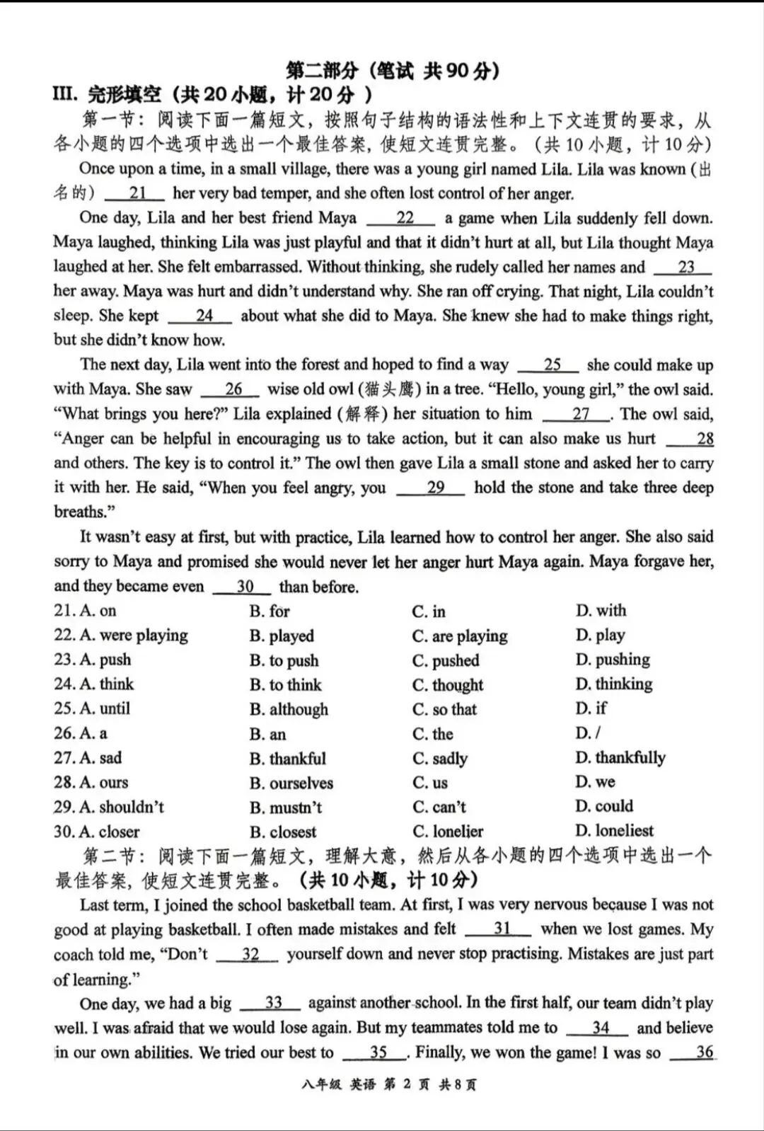 III 完形填空