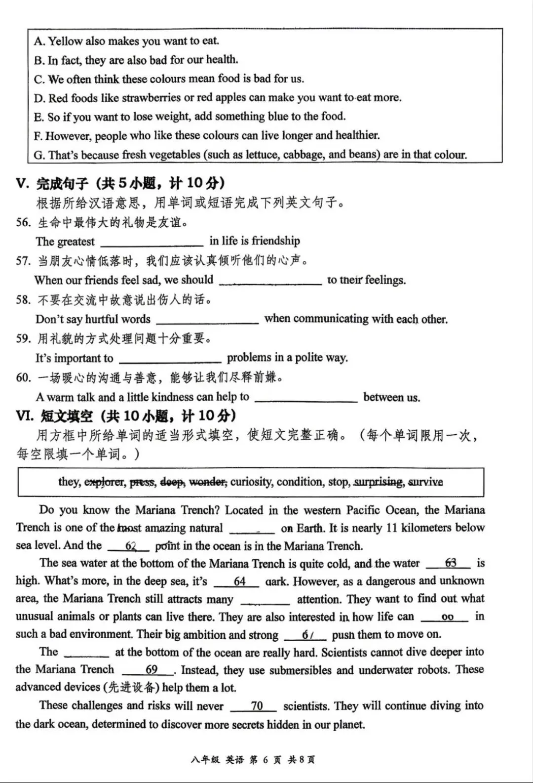 VI 短文填空
