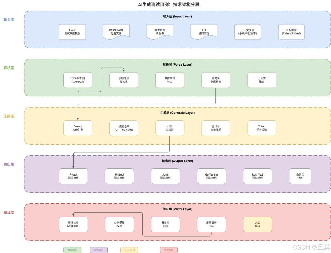 把AI引入测试用例生成是我在2024年底开始的尝试。最初的动机很简单:能不能把测试数据从Excel里导入,AI帮我自动生成符合规范的测试用例代码?