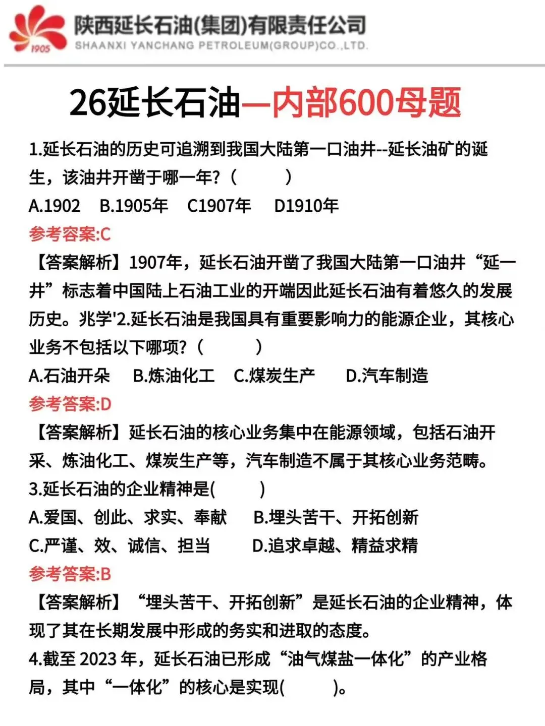 2026陕西延长石油考前压题卷、陕西延长石油真题2021-2025、考前三色笔记、各类知识点、时政热点、考前冲刺、陕西延长石油企业文化等等