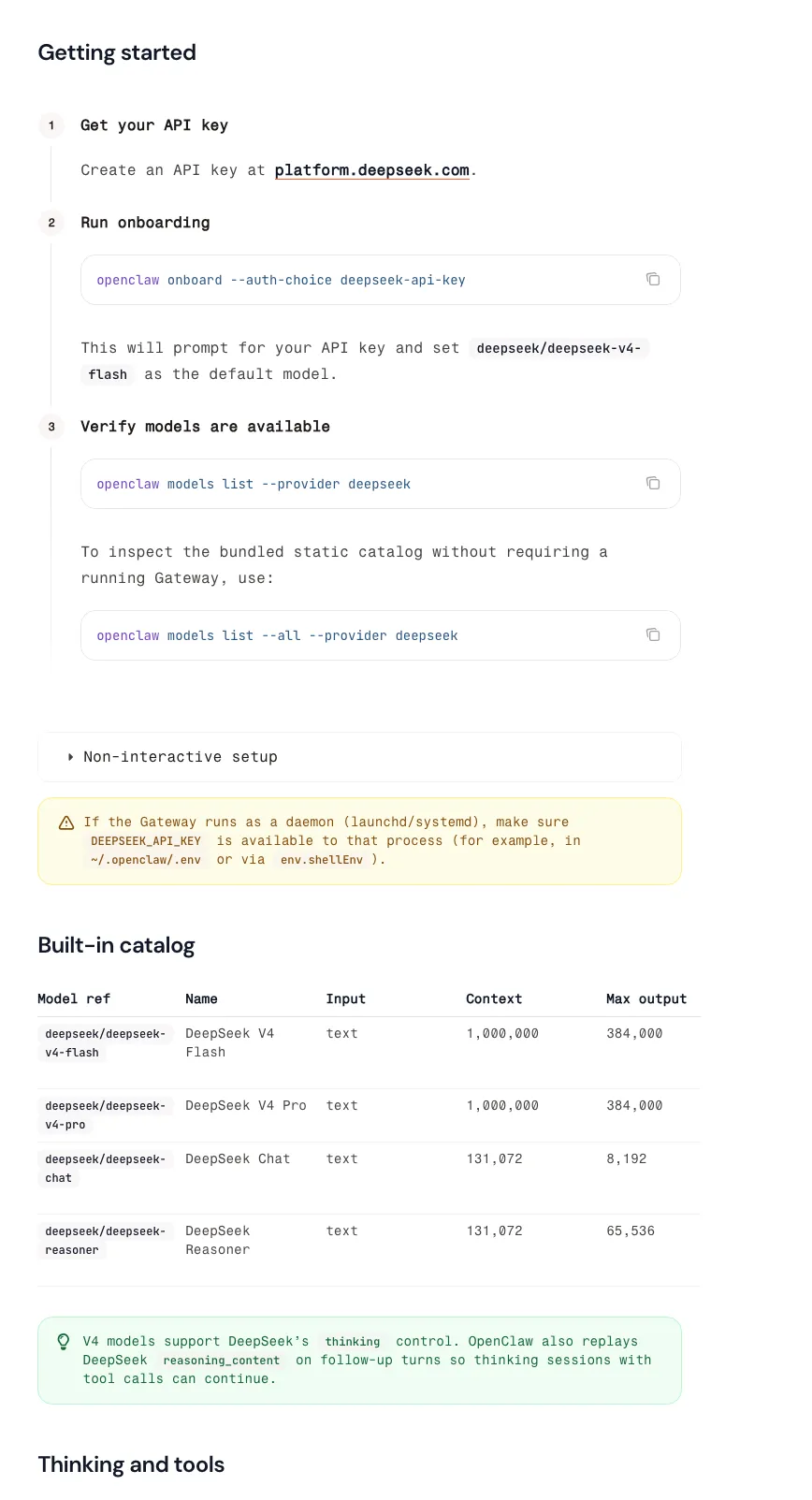 官方主更新把 DeepSeek 提到更直接的位置,配套文档也把获取密钥、onboard 接入和 models list 验证写得更清楚,门槛确实在下降。