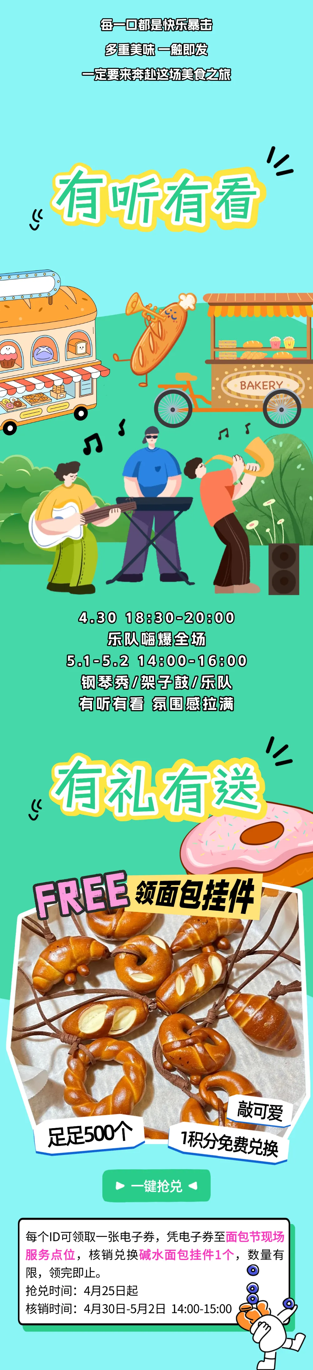 明日10点百观新闻app开抢!!面包节现金券、美食、礼品,「嘭!城市面包派对」第三波福利开炸!