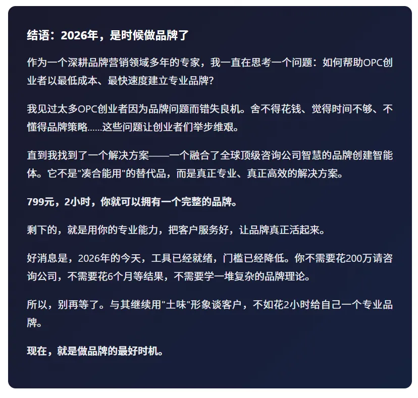 赛道越来越拥挤,客户越来越挑剔。而OPC创业者最大的短板,恰恰是——品牌。