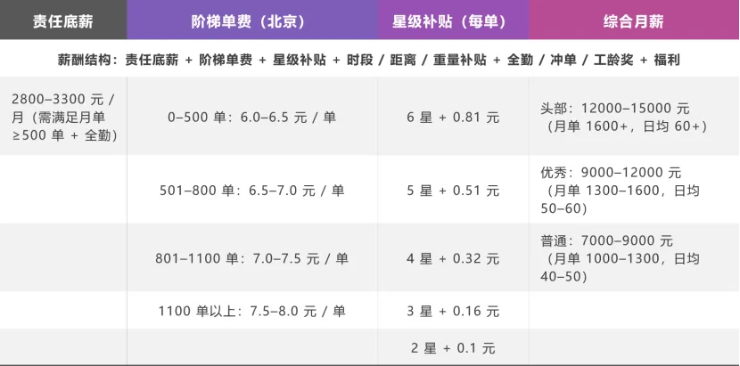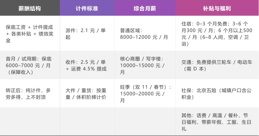 在移动互联网技术没有兴起之前,当时人们到北、上、广、深或省会城市务工很多首选是在餐厅或物业公司,因为当时这些岗位是管吃管住,便于务工人员在城市落脚,之后他们慢慢熟悉这个城市,再找到更合适的工作岗位。后来,有了微信,务工人员在进城之前就已经可以通过同学群、老乡群已经把他们要来的这个城市了解清楚,并且可能都已经找到了工作、找到了住的地方,新兴的现代服务业又给他们提供了大量的就业机会,并且这些机会相对于餐厅服务员、工程人员、保安员收入更高。这就是导致物业行业人员成本虽然不断上涨,但人员质量却在不断下降的核心原因,物业公司现有的薪酬结构面临巨大挑战。下面是顺丰与美团两家公司的快递员与外卖员在北京的收入构成: