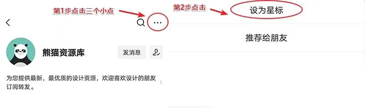 公众号改推送机制了,以后可能收不到咱们消息了,不想错过优质的资源分享,请点左上角蓝字熊猫资源库,然后按下面步骤,设置星标★就可以优先推送了,谢谢大家的支持。