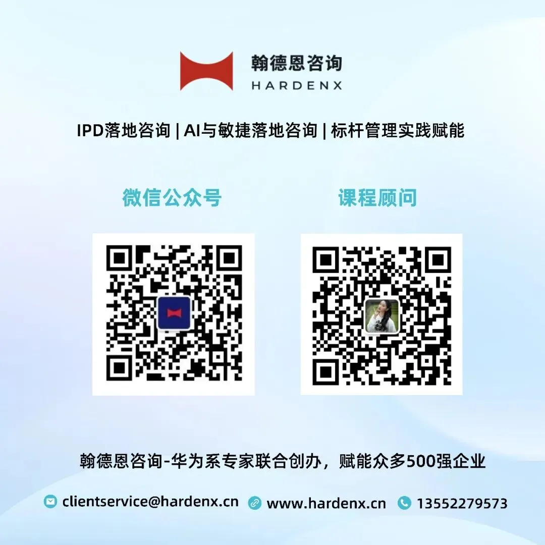 翰德恩咨询,汇聚众多华为等世界500强10年以上资深专家与AI数智化实战专家,以深厚的IPD实战经验为底座,以敏捷方法为执行引擎,以AI技术为驱动,帮助企业重构业务流程、提升研发效能,实现降本增效与业绩持续增长。我们倡导轻量化IPD导入、敏捷与AI融合落地,结合企业行业特点与组织能力量体裁衣,已辅导众多企业实现升级——让效率看得见,让增长真实现!