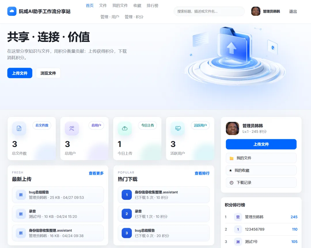 我们鼓励用户将已经测试好的工作流上传至分享站,以供同事或者其他兄弟单位共享使用,当然我们提供了积分和评优模式,定期评选的优秀的工作流,我们将赠送一些实用的硬件工具,以资鼓励!(具体评选活动的详细内容以及礼品清单,我们会在分享站公布!)