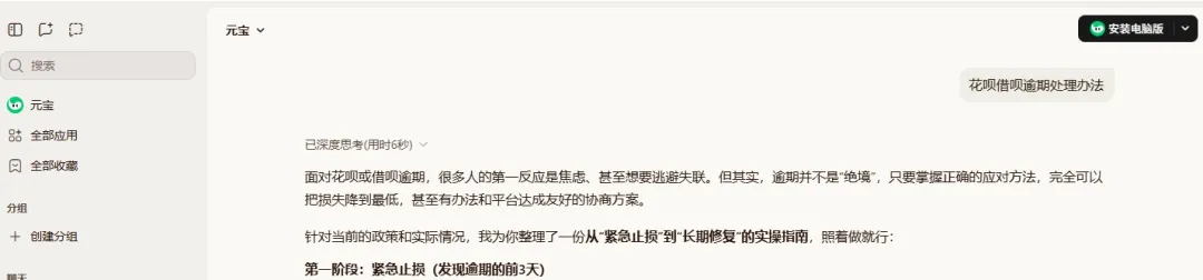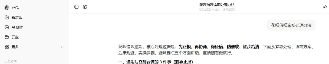 花呗借呗逾期还不上?测评6大AI软件回答“处理办法”,我发现只有这1个回答最靠谱!