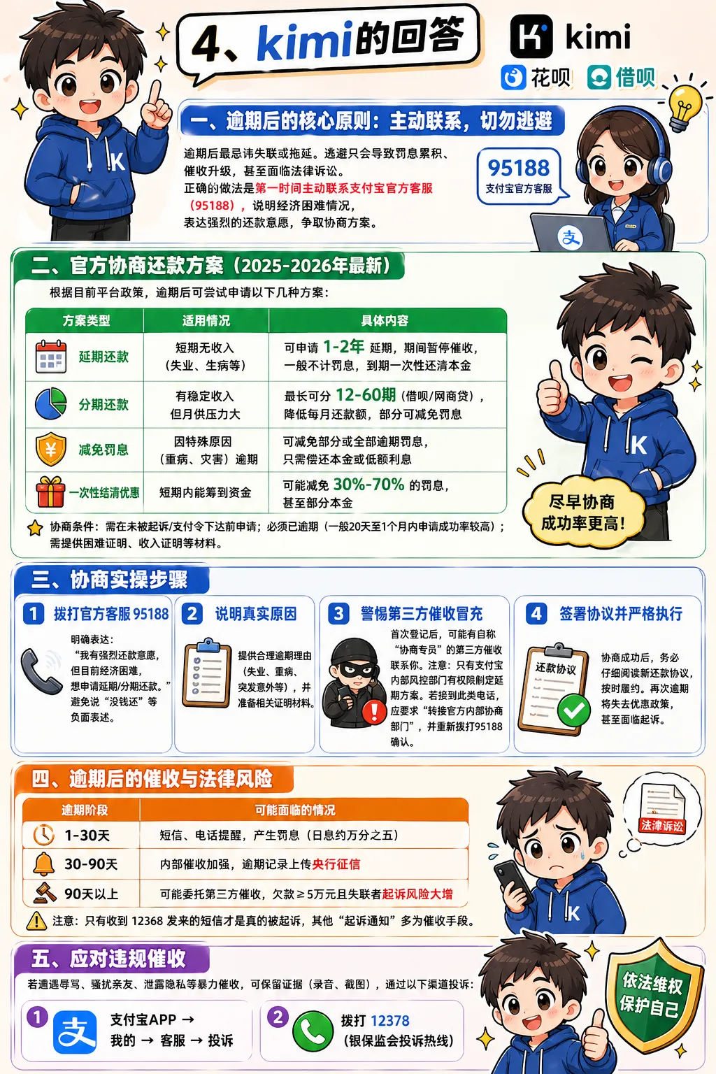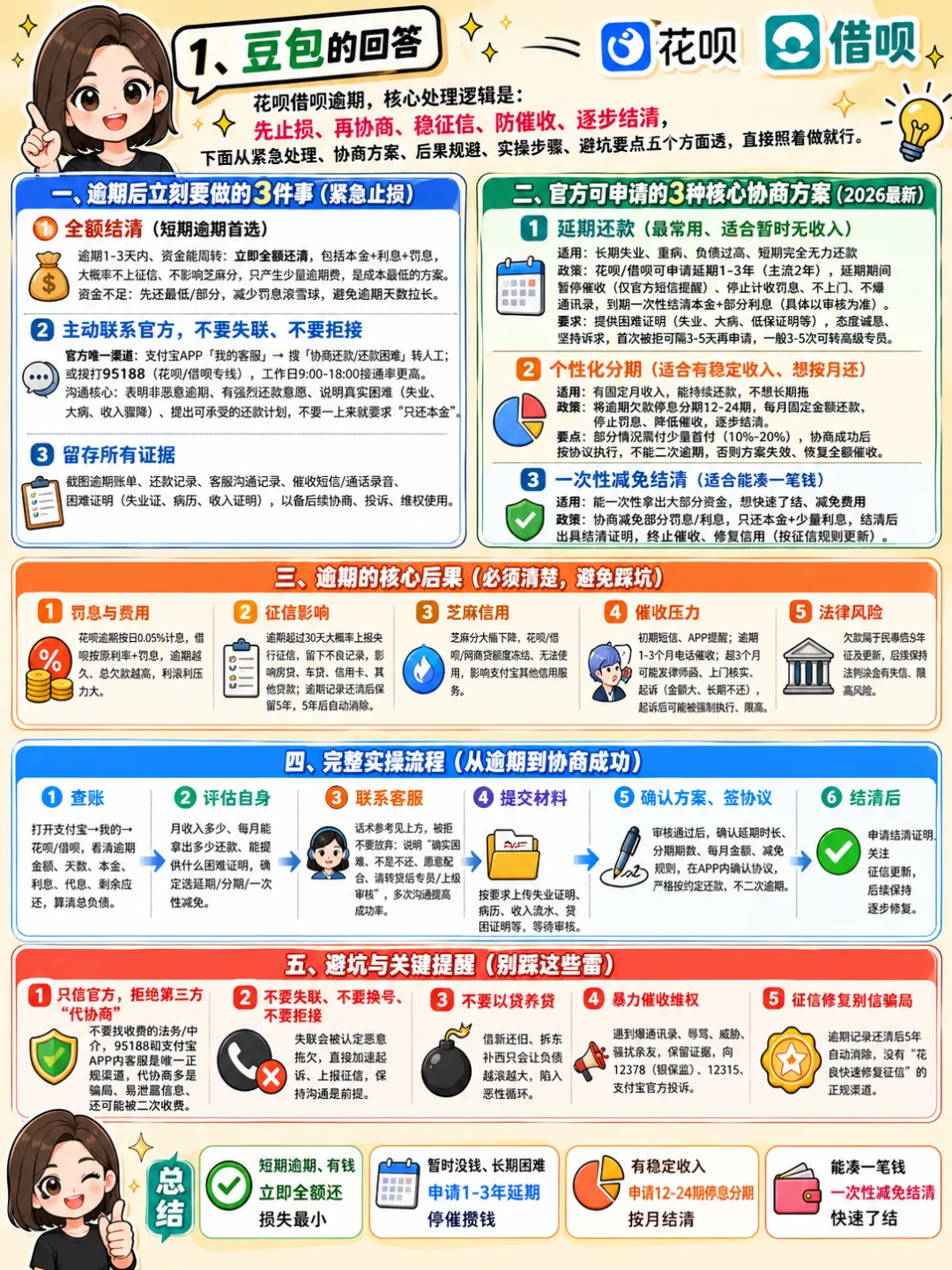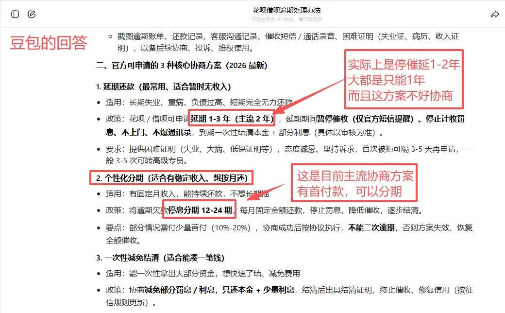 它是唯一一个把花呗借呗逾期协商还款方案和协商还款流程讲的比较正确的一个。
