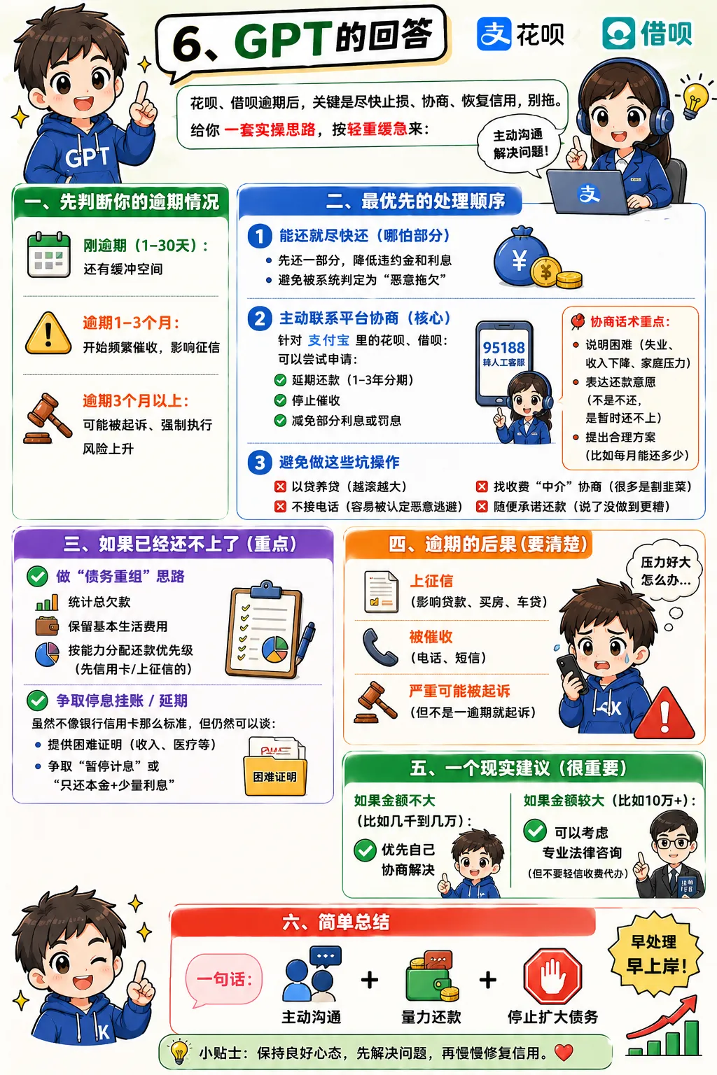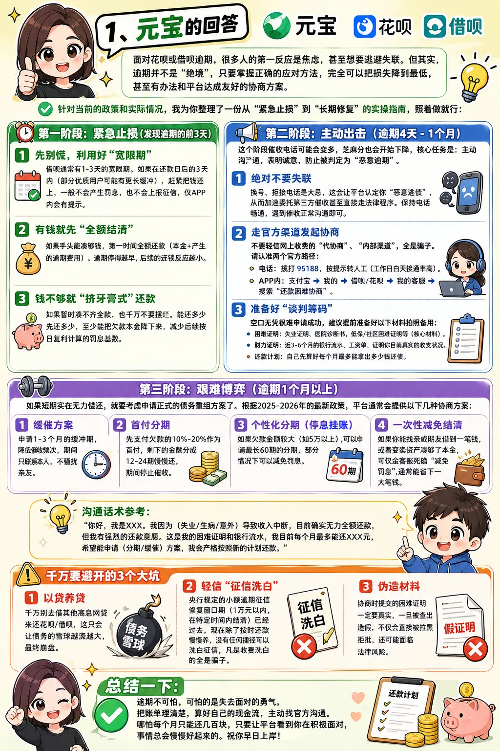 花呗借呗逾期协商还款,每个人的额度、逾期时间、还款能力都不一样,没有一套万能话术能通吃。