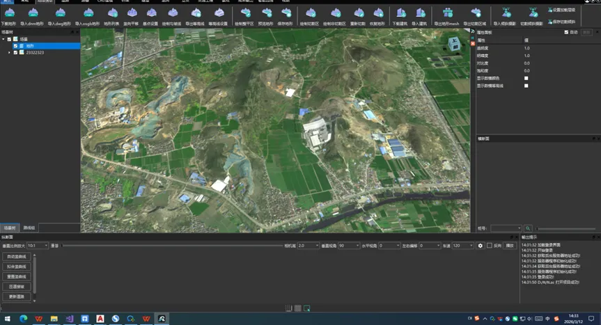 3.点击“打开数模-打开”,浏览并选中 AIRoad 导出的 mesh 地形文件;导入后,无需手动调整即可生成三维地形模型,支持实时剖切、等高线生成等后续操作。