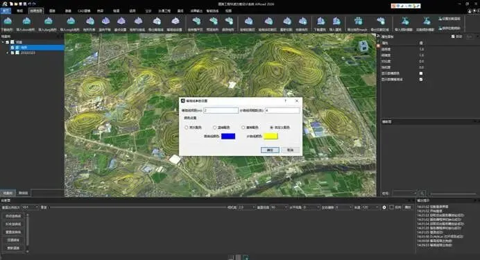 2. 首先点击 “地理信息 – 等高线设置” 命令,设置等高线间距等参数并生成等高线;