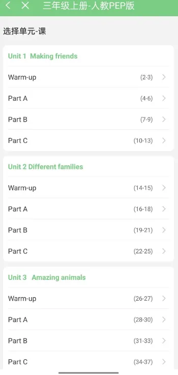 :系统自动推送当天需巩固的单词,包括新学单词和过往遗忘词 - 单元复习:学完一个单元后进行综合检测,查漏补缺
