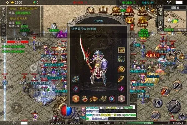 这款游戏的核心乐趣的就是打宝,零氪、散人也能靠打宝逆袭:前期去新手地图、蜈蚣洞刷怪,掉落初级装备和材料,可自用可交易;80级后解锁火龙神殿、祖玛神殿,这些地图掉落高阶套装和神器碎片,每天定时刷新世界BOSS,组队击杀,大概率掉落顶赞装备。