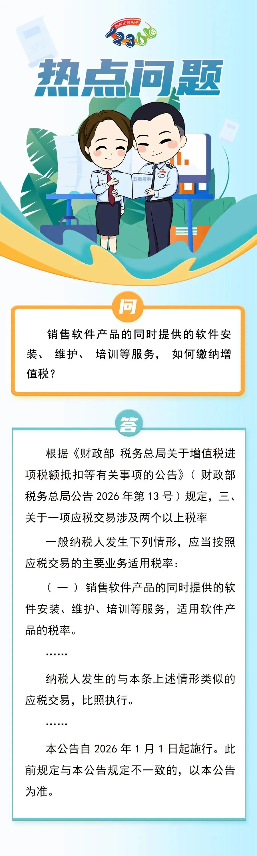 销售软件产品的同时提供的软件安装、维护、培训等服务,如何缴纳增值税? 来源:北京大兴税务 热 点 推 荐 新电子税务局变更办税人员(web端) 这些证书可以抵个税! 我公司找个人修电脑,这种小额业务支出的扣除凭证咋弄? 个税汇算进行时,注意这些高频易错点! 直播回放丨热点税费问题解答来了 2025年度企业所得税汇算清缴申报要点 北京大兴税务12366热点问题模块,涵盖增值税、个人所得税、企业所得税、社会保险费、印花税、个体工商户、小型微利企业、电子税务局、发票等业务类别,方便您快速识别咨询方向。点击下方图标,一键跳转查看! 常见税费政策解答 常见场景涉税解答