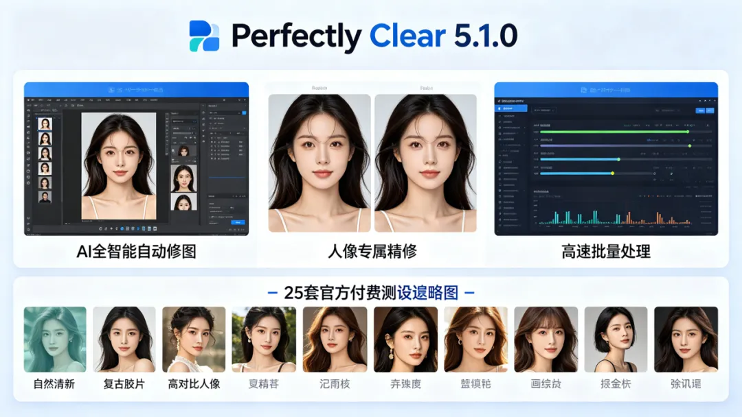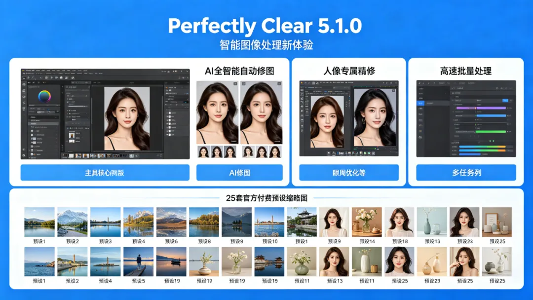 全新AI全自动批量修图软件5.1.0 中文版+官方25套付费预设