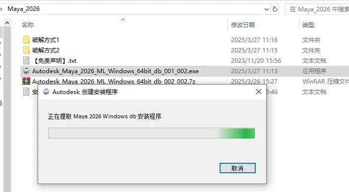 3.正在提取 Maya 2026 Windows db 安装程序