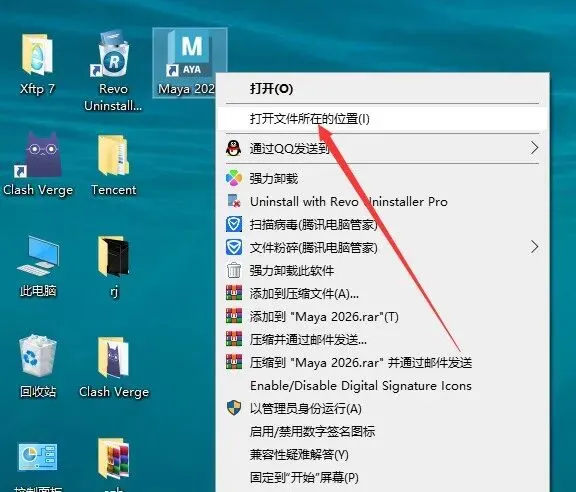 11.在桌面找到maya2026软件图标,鼠标右键打开文件所在的位置进入安装目录