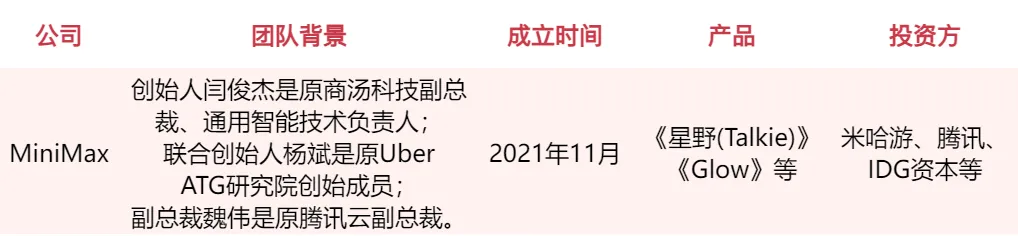 MiniMax 应该是当前国内估值最高的 AI 大模型初创公司之一。自 2022 年先后受到云启资本、米哈游、腾讯的青睐,估值一度来到 12 亿美元,去年被海外科技媒体 The Information 评为中国 AI 初创企业 TOP5。