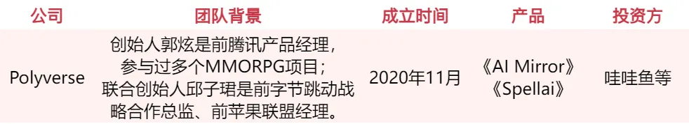 杭州心识宇宙(Mindverse)是一家获得亿元融资的前沿 AI 技术初创公司。创业班底来自阿里巴巴、字节跳动、微软、网易,核心成员中也有游戏背景出身,例如产品负责人陈阳,曾在网易游戏任职超过 8 年,历任《明日之后:命运因子》产品负责人、《战国志》《天下 X 天下》主策划等职位。