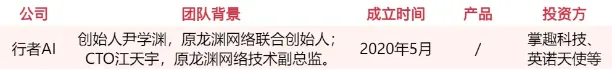 行者 AI(成都潜在人工智能科技)的创始团队出自龙渊网络,曾参与制作了《多多自走棋(Auto Chess)》等游戏。该公司以游戏为起点,并向美术、音乐、智能体、安全等领域拓展,探索 AIGC 的应用及解决方案。去年天使轮就收获多家机构的青睐,近期又拿到了掌趣科技的投资。