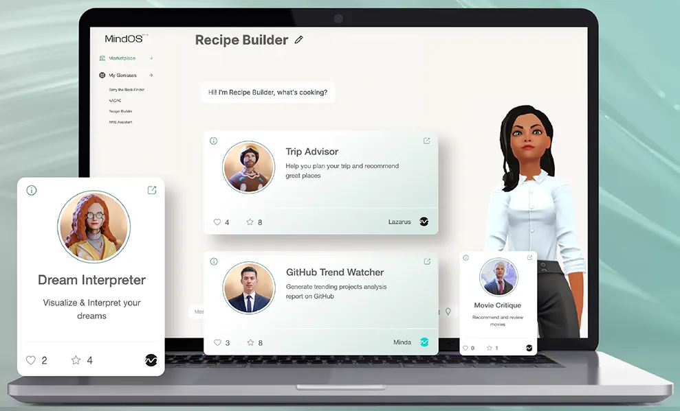 去年 7 月,心识宇宙在全球发布了无代码 AI agents 生成平台「MindOS」,允许用户创建和定制 AI 虚拟角色,并训练 AI 协助工作和生活,包括查询/总结邮件、安排项目日程并跟踪进度等。此外公司还在抖音、微信上架过一款结合 AR 与 AI 技术的小程序「万物总动员」,允许用户通过 AR 扫描与物品进行对话,赋予物品个性和自我认知。