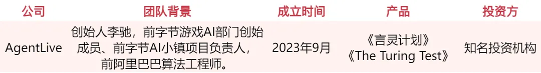 AgentLive(上海喵吉托)是一家年轻的 AI 原生游戏研发团队。公司首款产品叫《言灵计划(Speakrit)》,是一款由 AI 驱动的演出派对游戏,已于 2024 年 3 月 8 日在 Steam 开启线上删档测试。在游戏中,玩家通过 AI 自定义宝可梦的外形与战斗风格,生成专属的伙伴,并以文字或语音的形式(文字战斗系统)的形式与对手进行「嘴炮」对战。