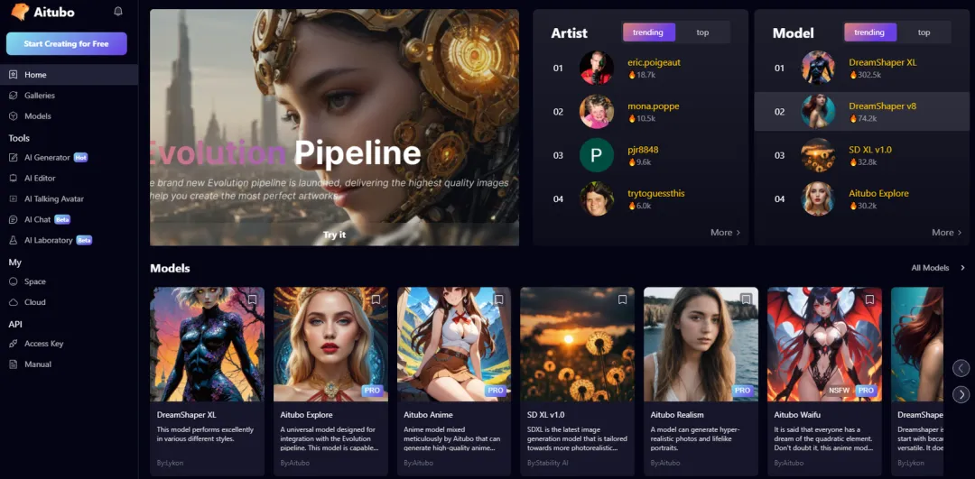智周未来旗下已有多款 AI 产品,包括微信小程序「AI 魔法头像」、AI 角色扮演聊天软件《AI ChatFun》、AI 音乐翻唱软件《AI Cover & AI Songs》,以及免费 AI 绘画平台《Aitubo》等。其中《Aitubo》有手机和网页版,支持把图片或文本转化为各种风格的头像或艺术照。目前公司还在招聘欧美卡通休闲游戏相关岗位。