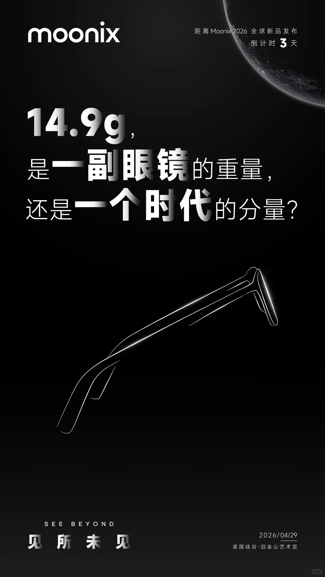 14.9克的智能眼镜,Moonix AI眼镜将于4月29日硅谷发布 | 新品预告