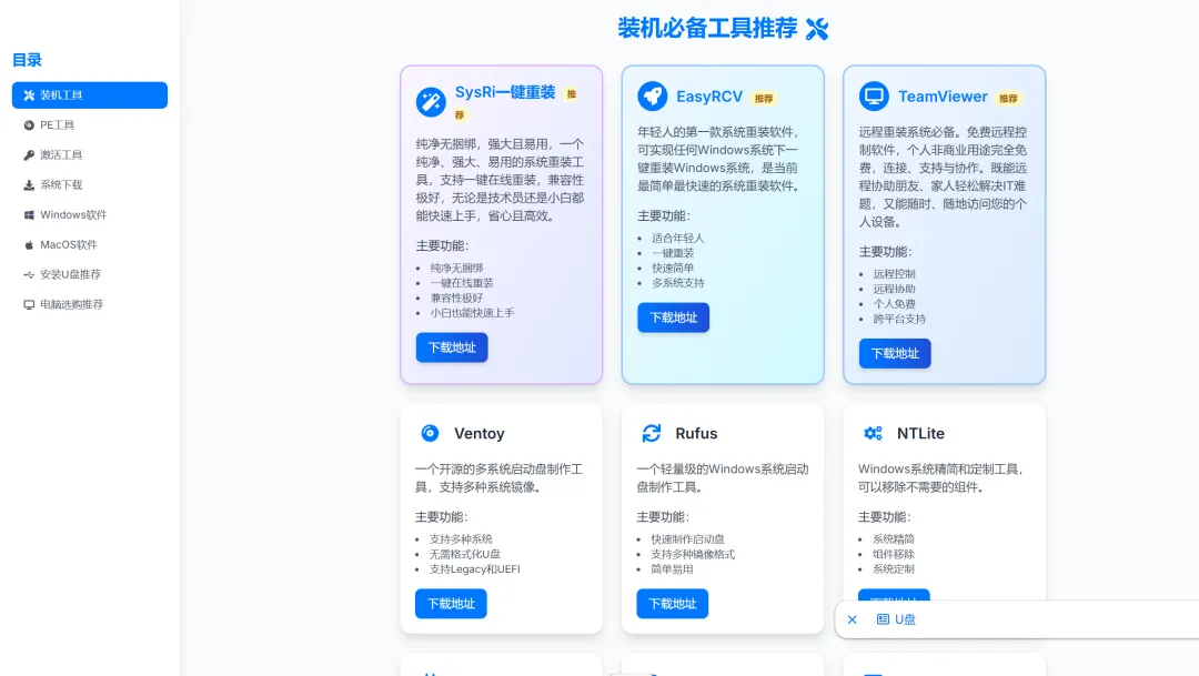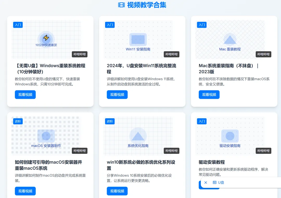 提供Windows/Mac重装系统教程、一键重装系统工具、U盘启动盘制作方法、PE工具、系统激活工具