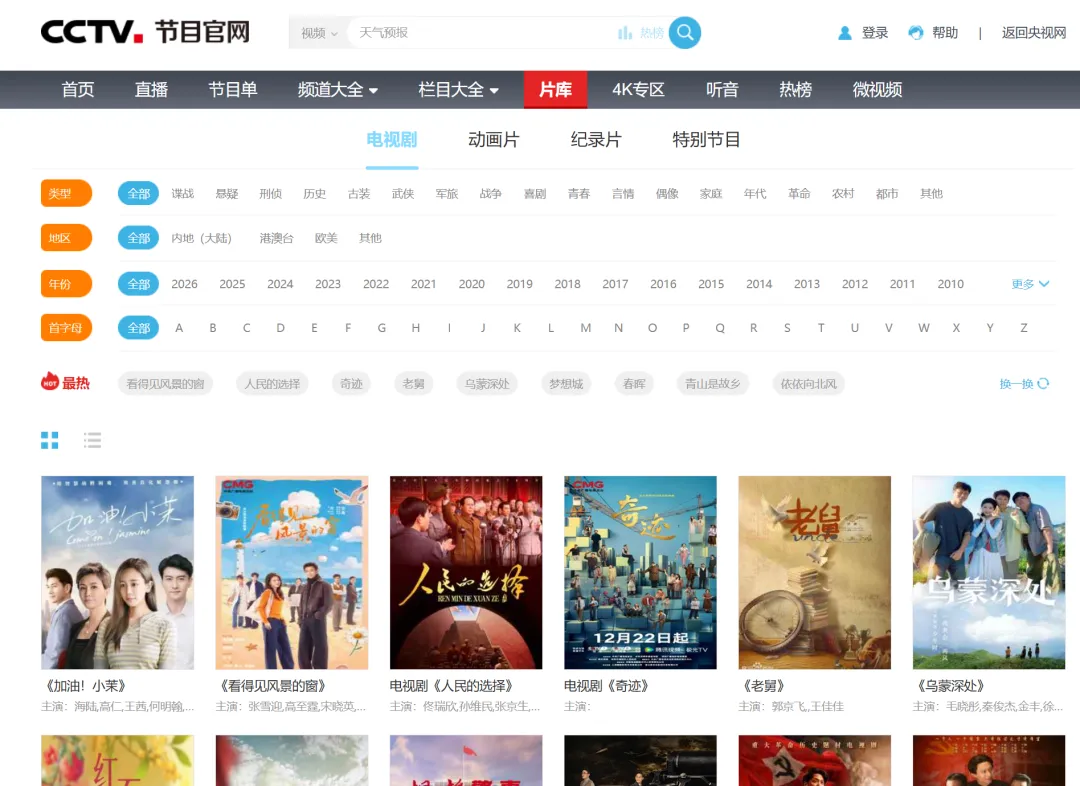 涵盖央视最新最全的纪录片、动画片、电视剧以及各类晚会、大会等特别节目